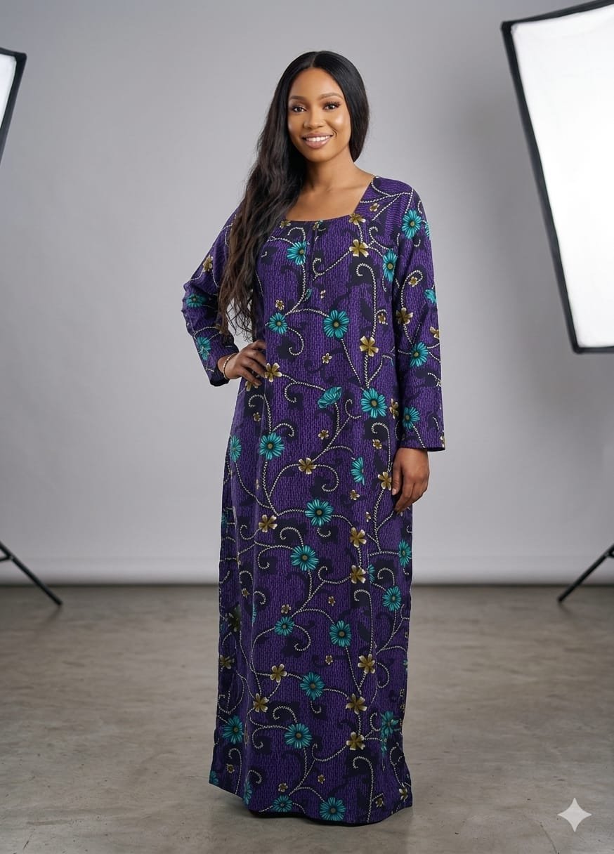 Une jalabiya élégante alliant confort et style, conçue avec une coupe ample et fluide qui offre une grande liberté de mouvement tout en garantissant une allure raffinée. Elle se distingue par sa couleur verte vibrante ornée de motifs floraux délicats, apportant une touche féminine et moderne.